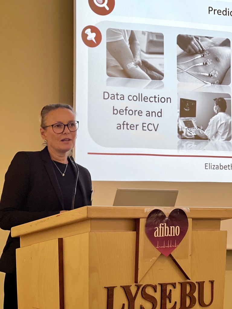 Results from two Bærum-based studies were presented by Elizabeth L Andersen and Eivind Sørensen. The Pre-Electric study described recurrence rates after electrical cardioversion and Dr. Sørensen showed how the left atrial strain is affected in athletes with AF.